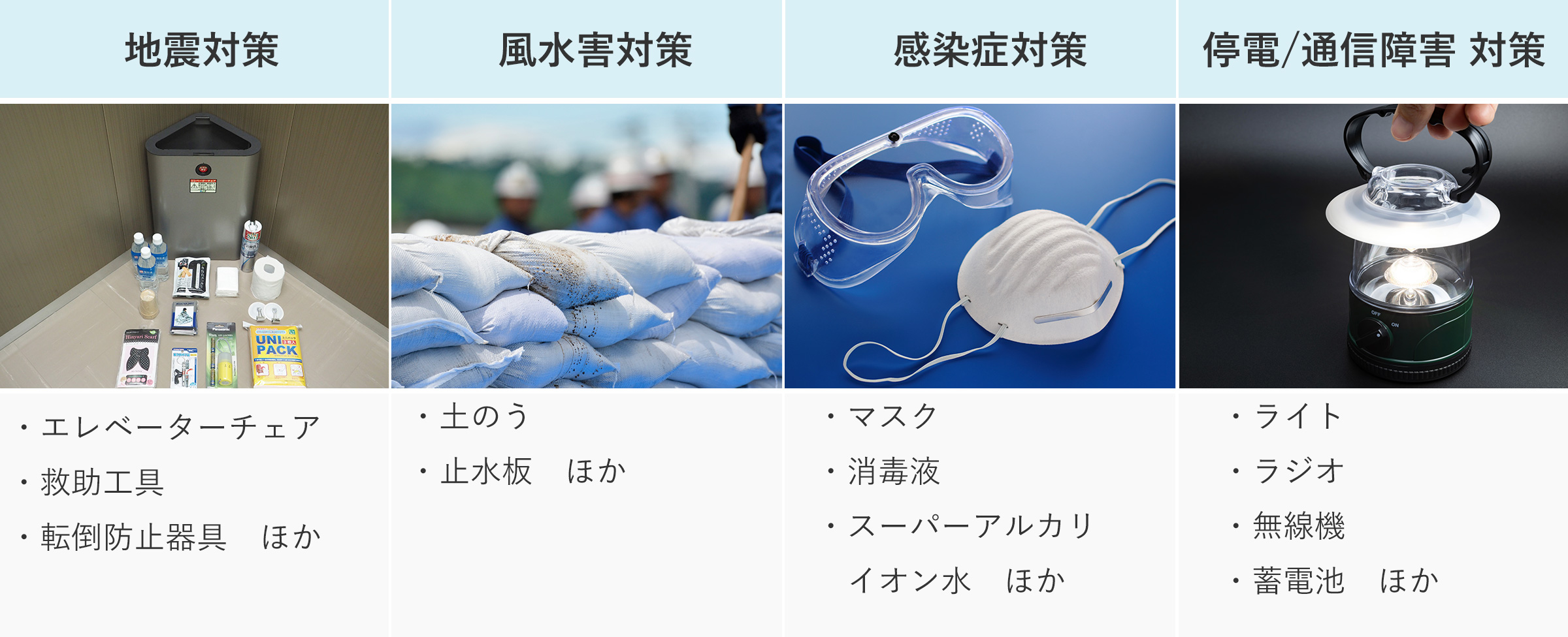事業内容や立地の状況により災害対策・衛生対策は異なります。