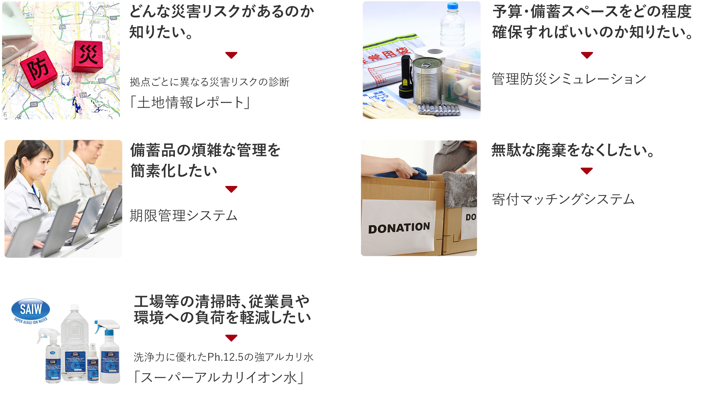 防災担当者のお悩みを解決する各種サービスをご用意しております。