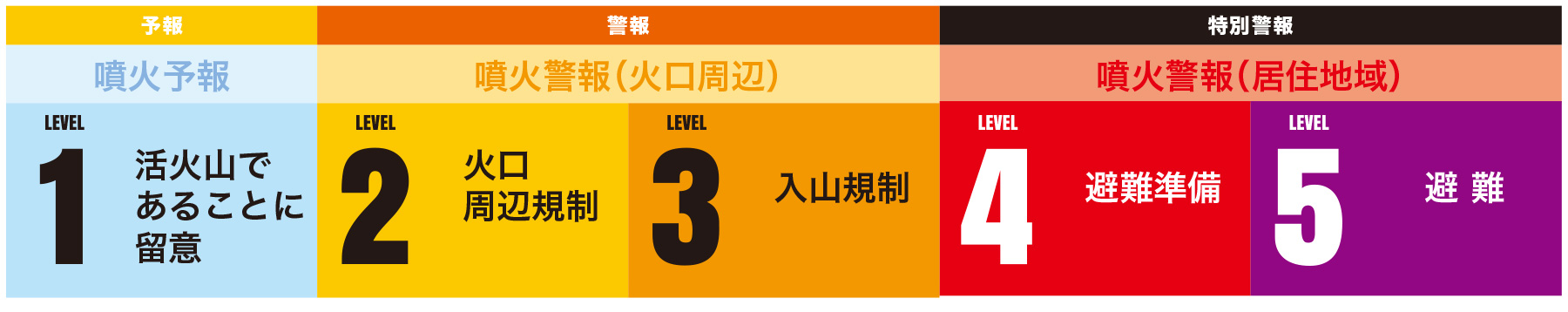 気象庁が発表する噴火警報・噴火警戒レベル等に留意し、警戒が必要な範囲