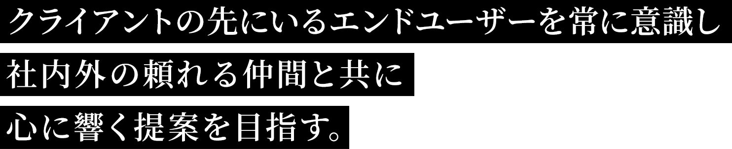 どんなに素晴らしい商品やサービスを提供しても、最終的にそれを受け取るエンドユーザーに満足してもらえなければ意味がないと考えています。そのため、仕事上はクライアントとのやり取りであっても、エンドユーザーの視点で心に響く提案になっているか立ち返って考えることを忘れないようにしています。